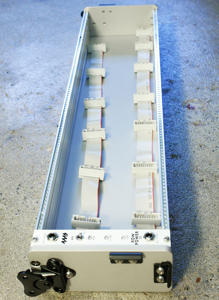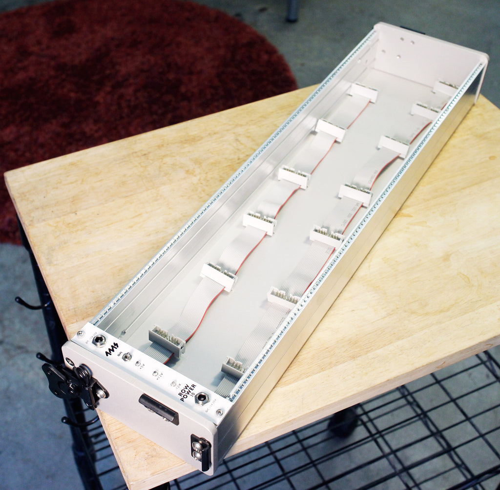 Stand-alone eurorack rows connect together in a variety of shapes and sizes with no screwdrivers or tools.