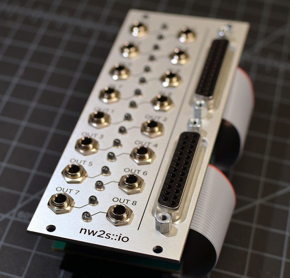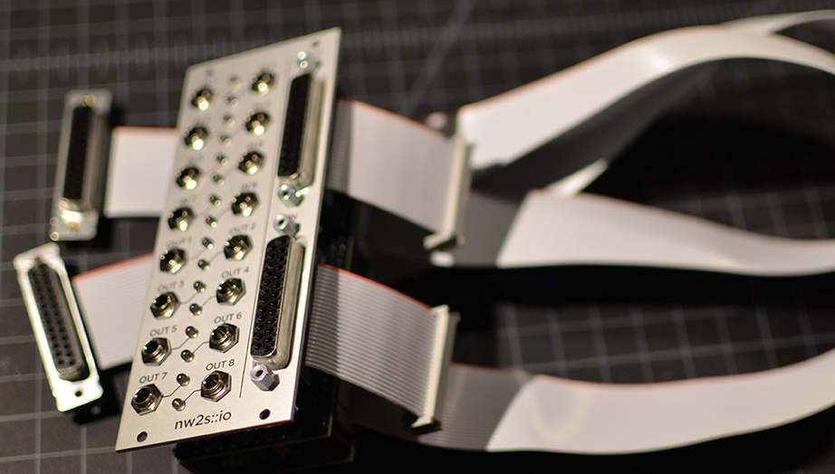 The nw2s::io is available either electronically balanced or passively unbalanced. Both versions provide 16 channels of i/o on 3.5mm tip-sleeve modular and TRS DB-25 Tascam-format in only 10HP.
