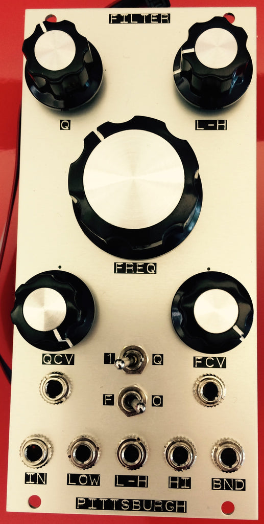 The Filter defines the Jekyll and Hyde sound of Pittsburgh Modular. On the one hand, it offers a warm, organic sweep through the full frequency range. The lowpass filter is gummy and relaxed while the highpass is clean and defined. On the other hand, switching into oscillator mode turns theFilter into a howling beast capable of chunky walls of distortion and noise. The goal was to produce a filter that does not have a single sweet spot. We worked to make every turn of a knob or flip of a switch offer something new and musically engaging.