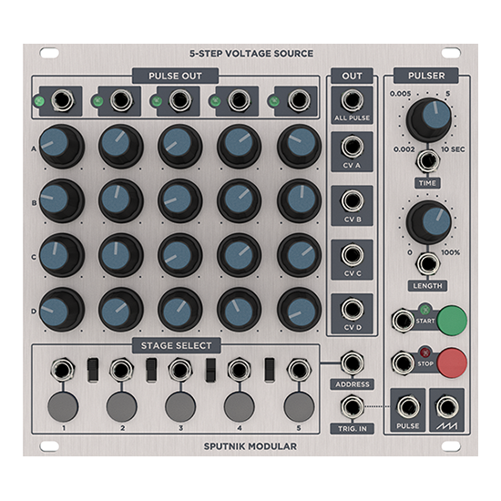 The 5-Step Voltage Source is a full featured sequencer for the Sputnik Modular system.