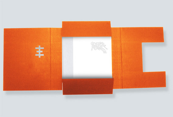 - three 7 inch singles, pressed on colored (white, orange and silver) vinyl with original picture labels and presented in specially-designed record sleeves. Four tracks have been created specifically for this project, and the third single is comprised of conversations recorded by Mark, with both Genesis and fellow pandrogyne Lady Jaye.