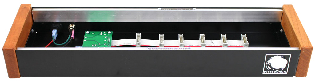 The Pittsburgh Modular Cell [90] is an expandable, desktop eurorack case and power supply. A custom designed, heavy duty steel frame matched with replaceable Pennsylvania cherry hardwood sides. The desktop cases are available in single and double row configurations. Frames and wood sides are available separately to allow for easy expandability and customizing.