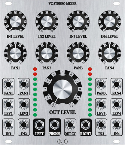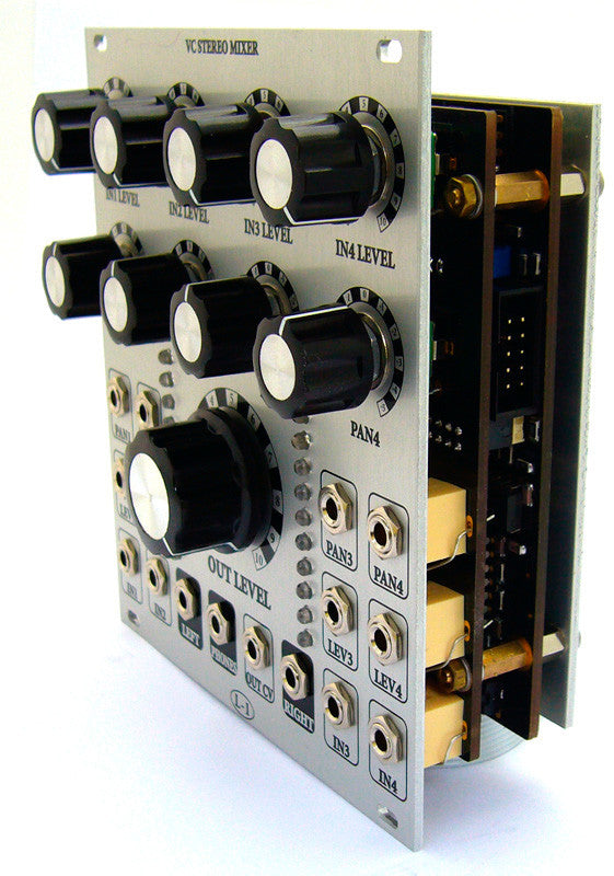 Audio signal flows only through VCA chips and summing amps (single opamp for left and for right), all controls through CV.